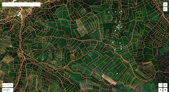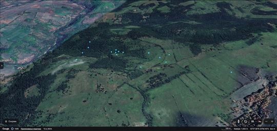Plavim tačkicama su označene parcele na geo i Google snimku.