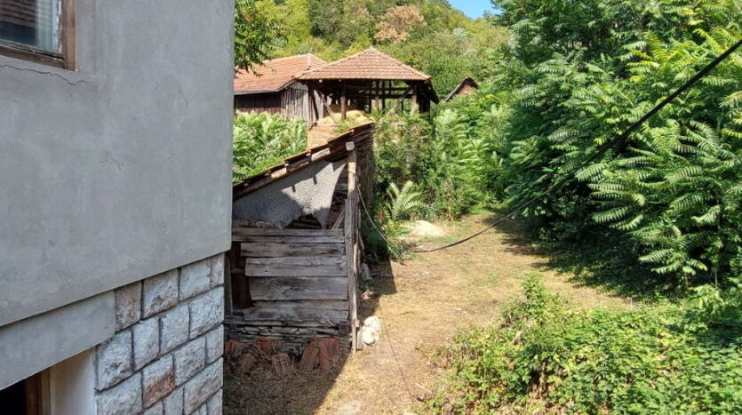 Preko puta nje je pomoćna stara zgrada 32m2 uknjižena, koja se koristila za stanovanje, ispred nje je ozidana neuknjižena garaža. Parcela je građevinska i dimenzija: (17,84x25x14,61×17,55). Struja trofazna, voda gradska, septička jama.