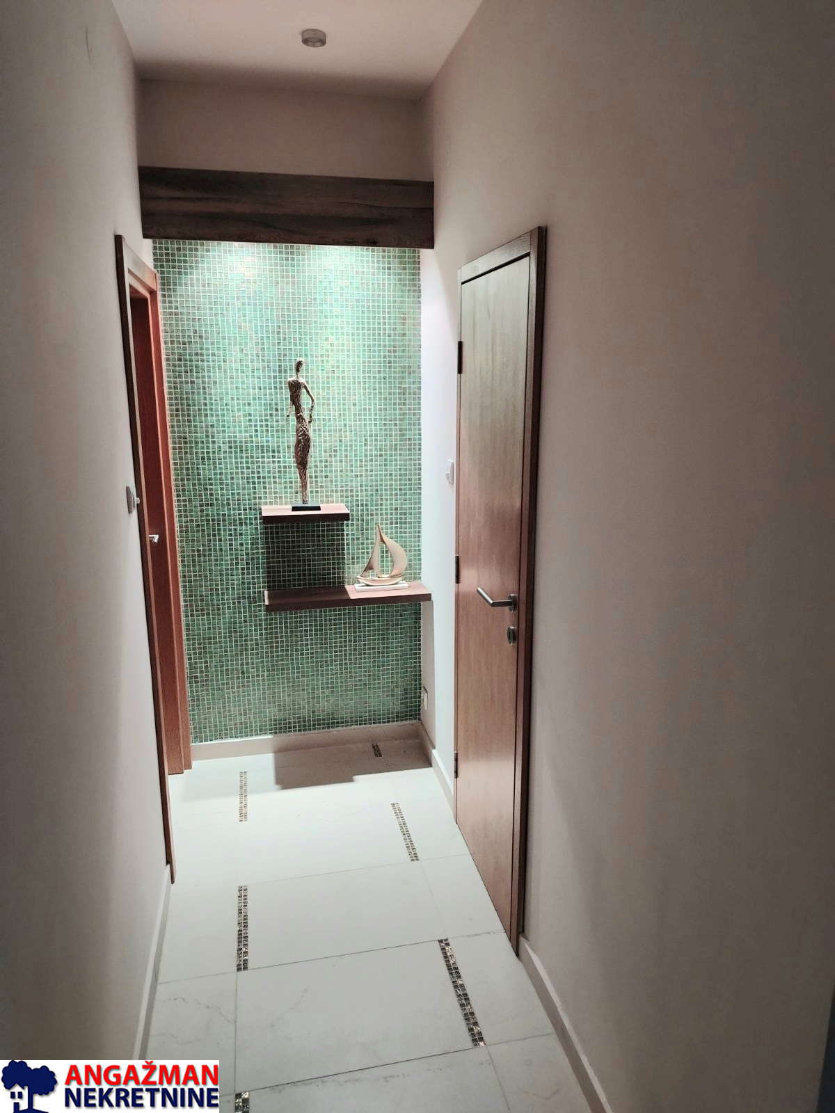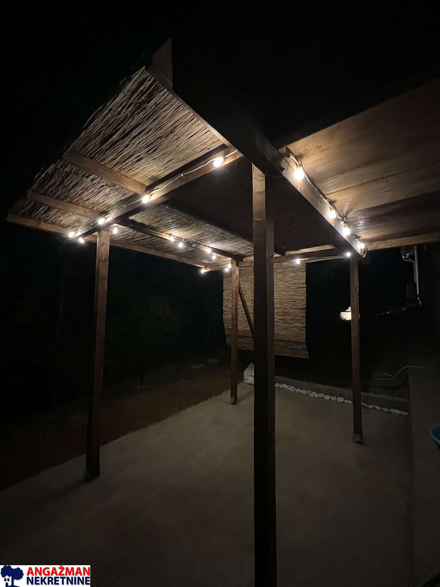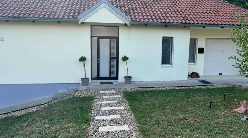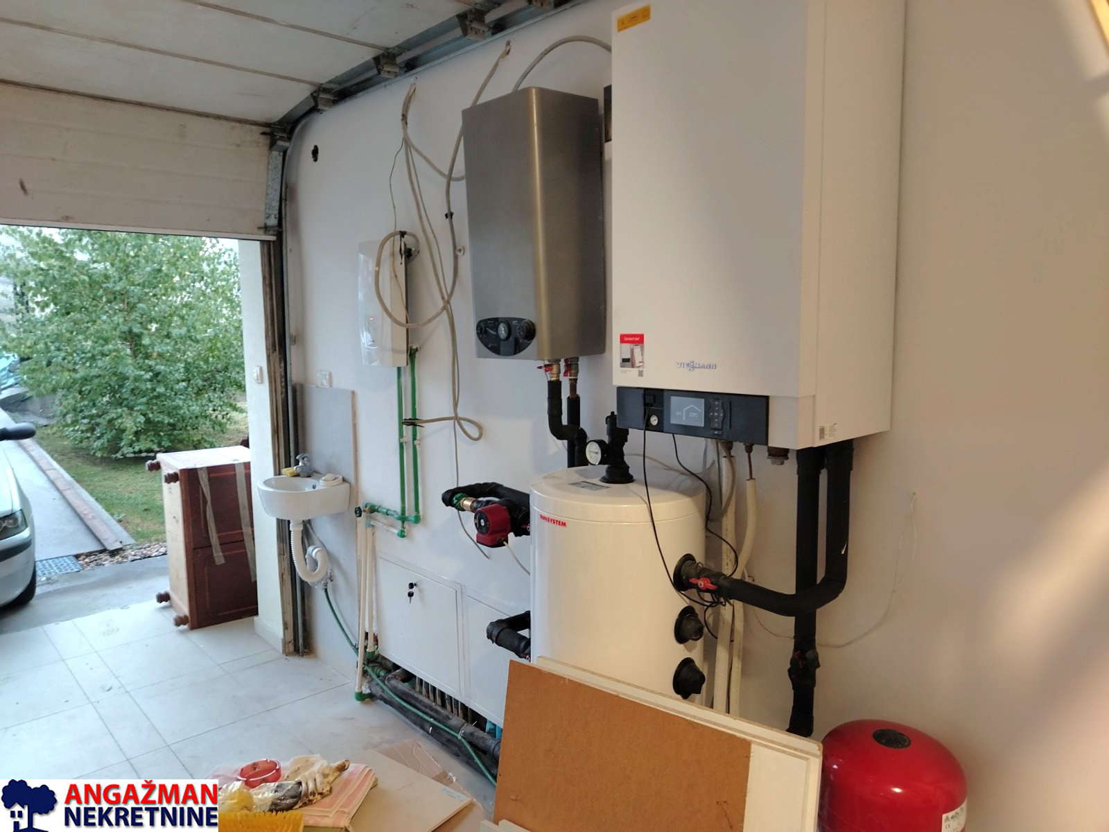 Prostorije: trem, hodnik, dnevna soba sa trpezarijom, kuhinja, kupatilo, spavaća soba sa svojim kupatilom, garderober, produženi dnevni boravak, terasa, garaža, dva parking mesta. Video nadzor, razvučena instalacija za alarm, razvučena instalacija za motor za kapiju.