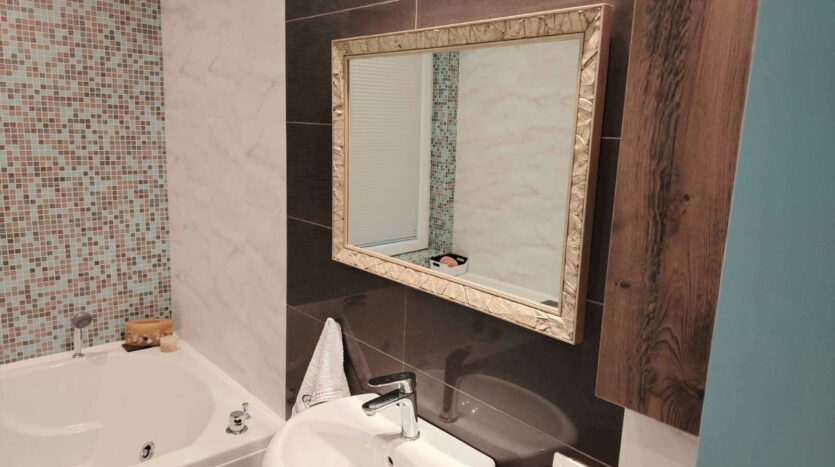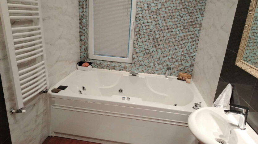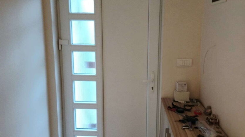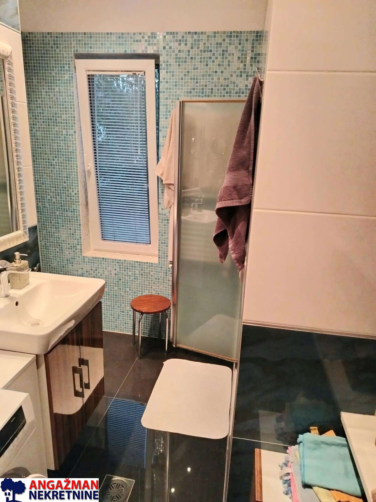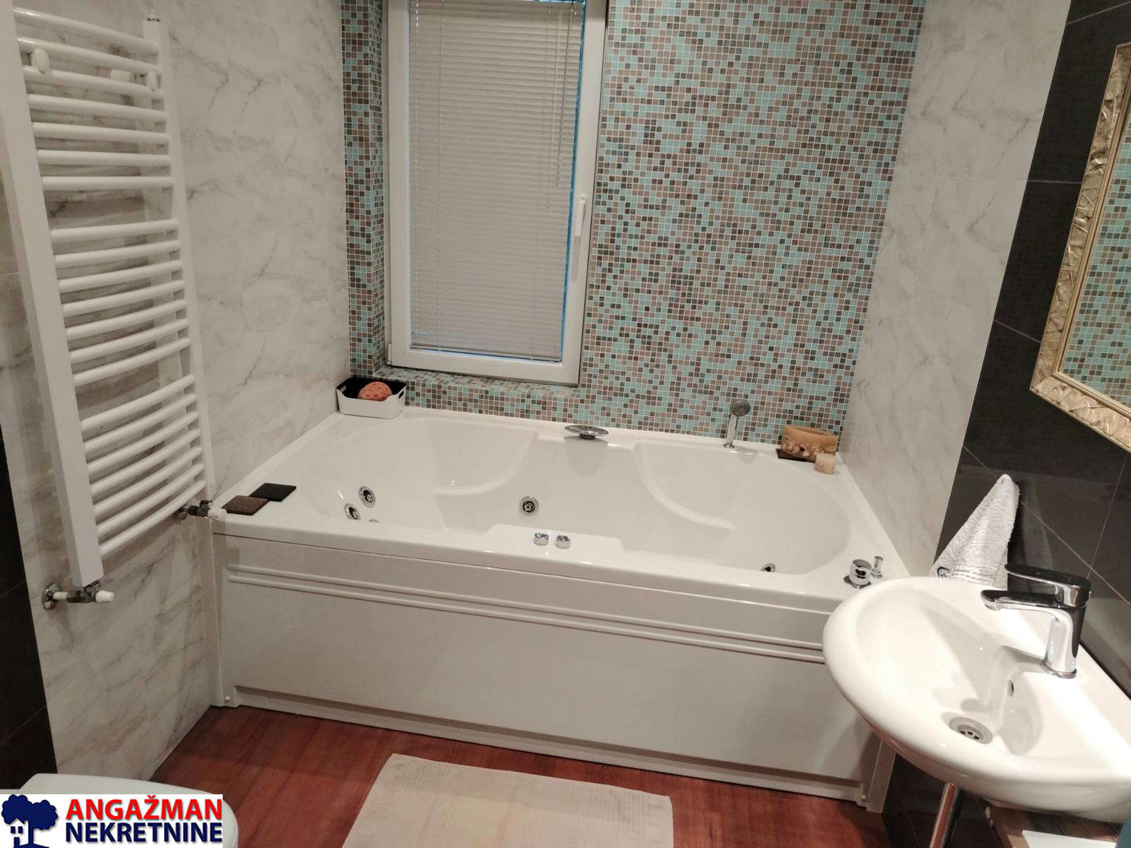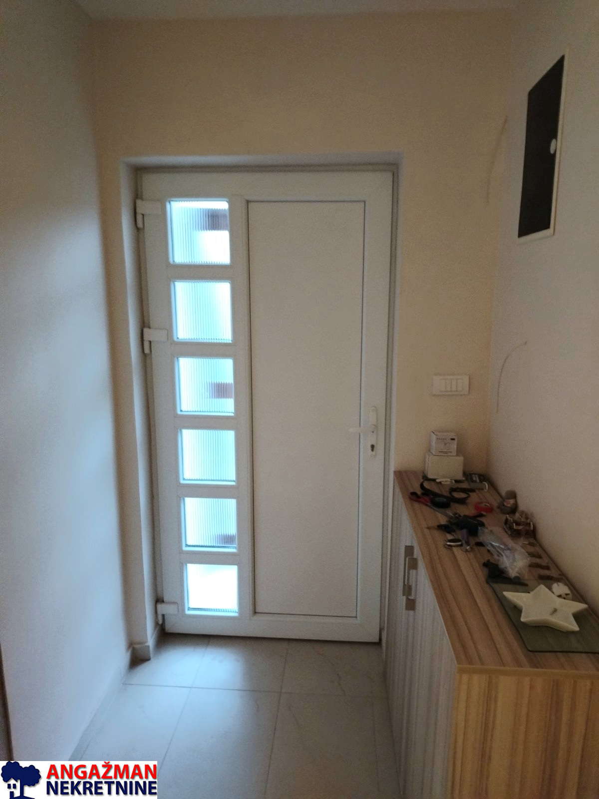 Prostorije: trem, hodnik, dnevna soba sa trpezarijom, kuhinja, kupatilo, spavaća soba sa svojim kupatilom, garderober, produženi dnevni boravak, terasa, garaža, dva parking mesta. Video nadzor, razvučena instalacija za alarm, razvučena instalacija za motor za kapiju.