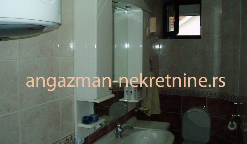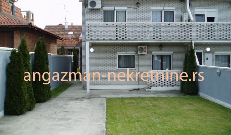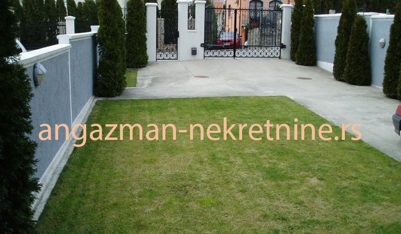 Jedna od tri kuće u nizu sa posebnim (ograđenim) dvorištem, četvorosobna po strukturi, SUT+PR+I, grejanje na gas, telefon, ktv, internet, četiri klime, podrum. U dvorištu mogu da se parkiraju tri automobila i ima deo sa zelenom površinom. Suteren se sastoji od dve velike ostave ukupno 26kvm. Prizemlje ima: kuhinju, trpezariju sa dnevnom sobom, toalet i terasu. Na spratu su tri spavaće sobe i kupatilo. Kuća se nalazi u središnjem delu naselja, u blizini Shop&Go prodavnice. Građena 2000. godine, dobro održavana i ne zahteva ulaganja.