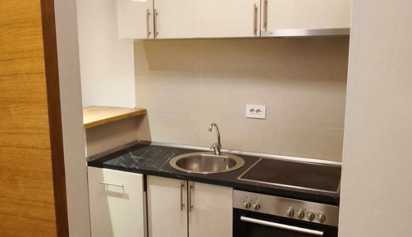 Prostorije: hodnik, veliki dnevni boravak sa izlazom na lođu, kuhinja i kupatilo. U cenu uračunata kuhinja sa svim aparatima.