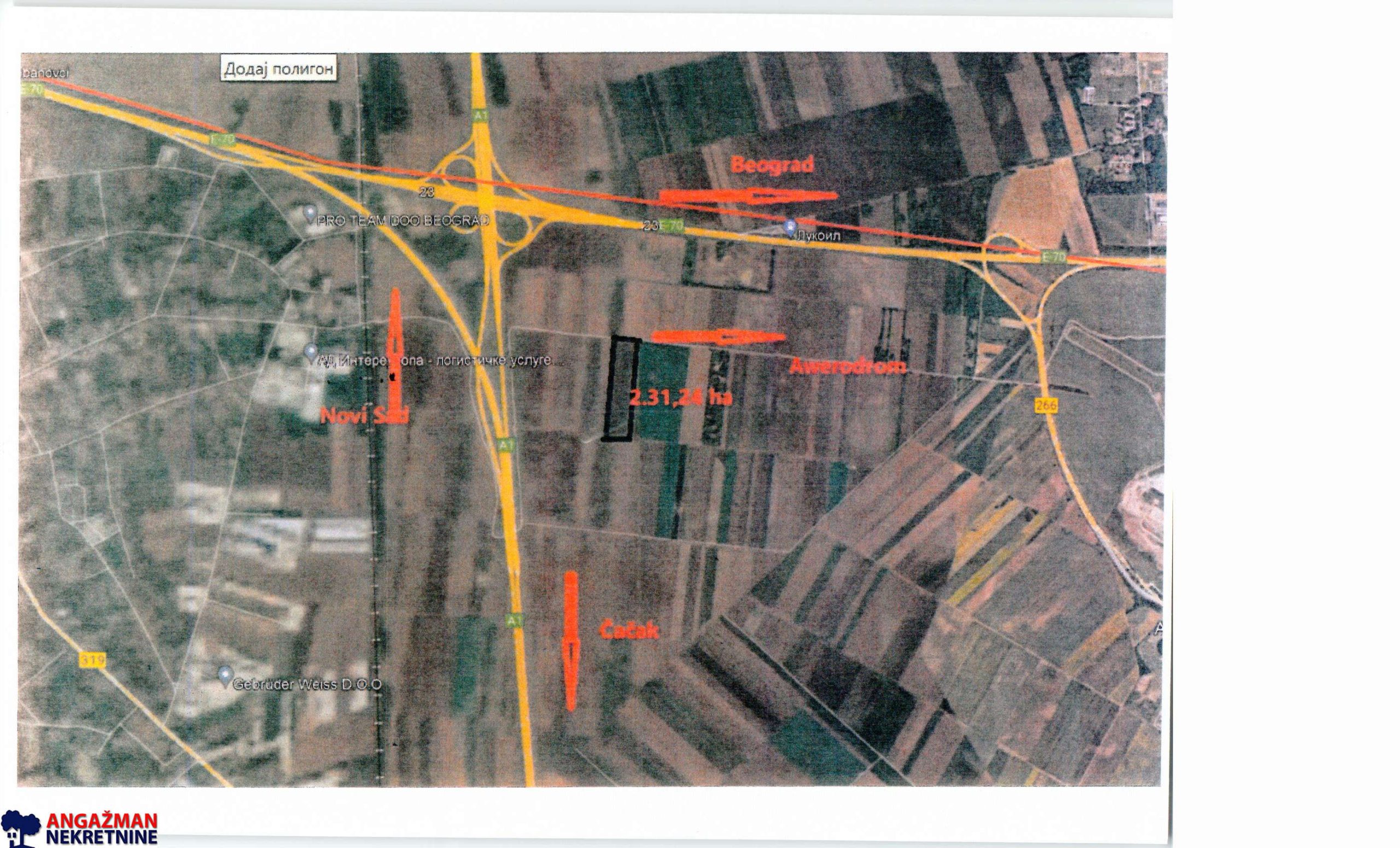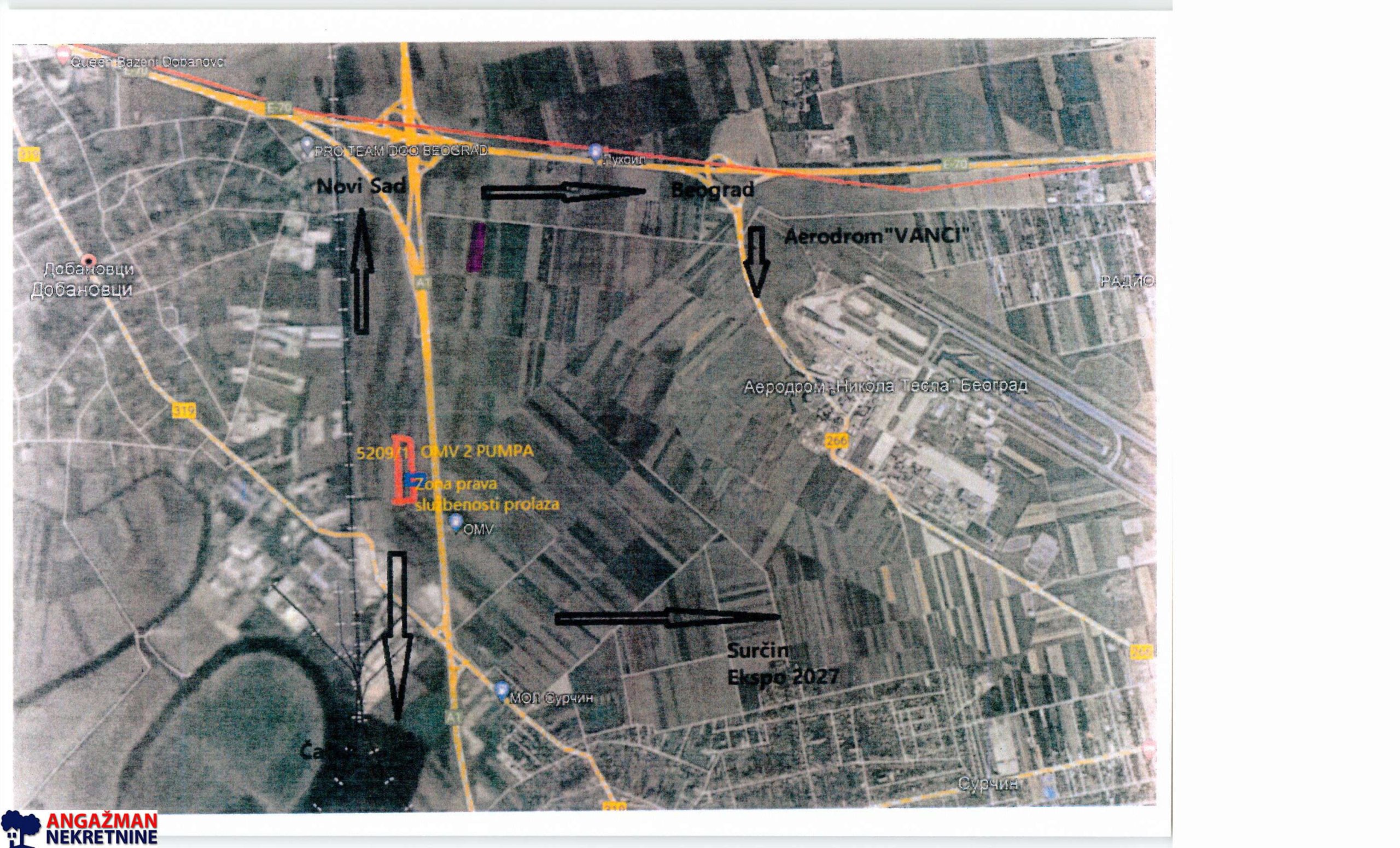 Posle aerodoma Beograd, ka Zagrebu, na dobanovačkoj petlji se skrene prema Nišu, sa desne strane, kod OMV pumpe, odlična lokacija, prodaje se građevinsko zemljište površine 115ari.