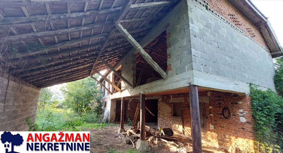 Prodaje se kuća (pr+1) sa izlaskom stepenicama u potkrovlje, sagrađena sedamdesetih od 216m2 u osnovi 108m2, uknjiženo 61m2 na mestu gde je bila sagrađena stara kuća, nova u procesu legalizacije, sa pomoćnim objektom od 33m2 uknjiženim i štalom sa senikom od oko 200m2 (neuknjiženom), na dve parcele građevinska 8a 5m2 i poljoprivrednom od 27a 73m2 povezane u jednu celinu (domaćinstvo).