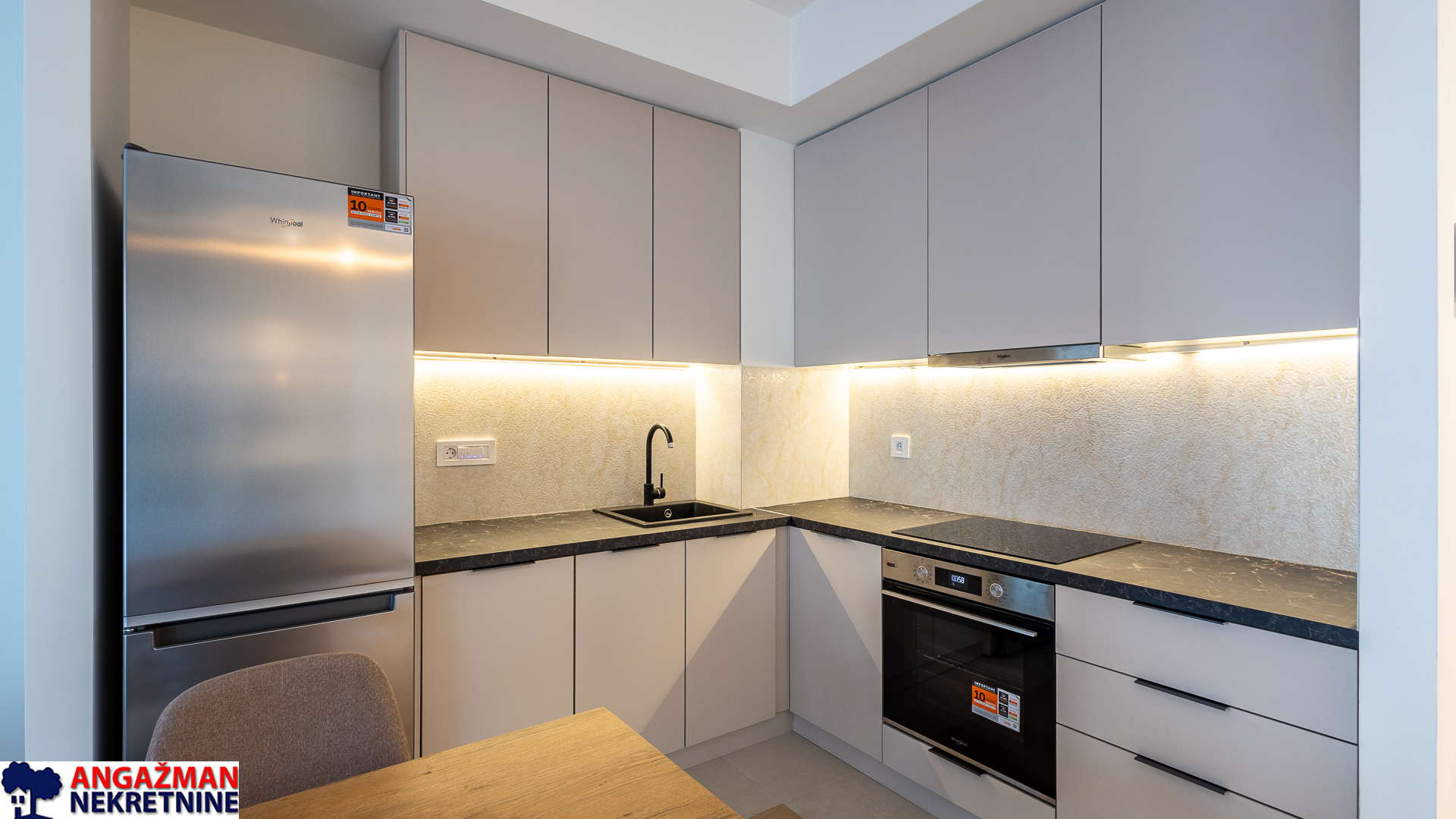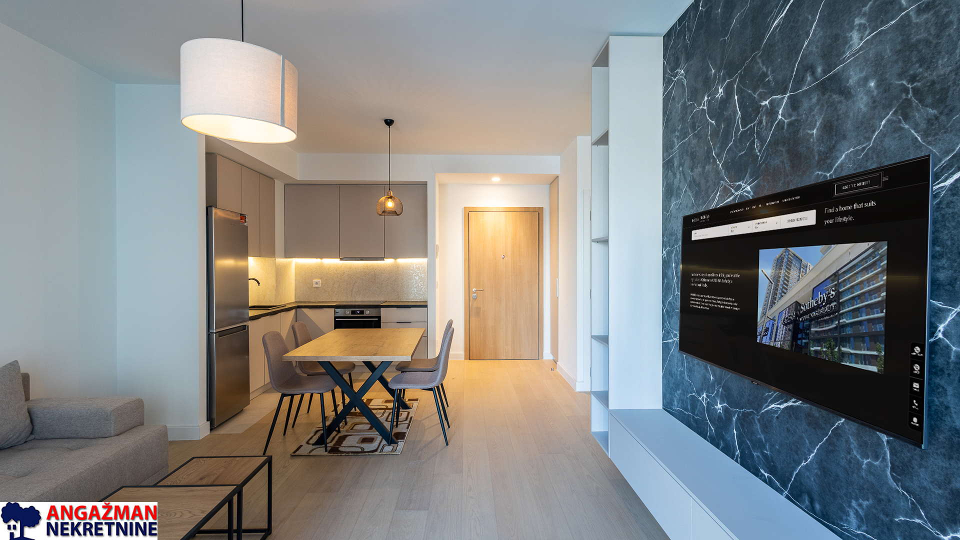 Kompletno opremljen visoko kvalitetnim nameštajem i belom tehnikom, povezani na sistem centralnog daljinskog grejanja i sa multi-split sistemom za klimatizaciju.