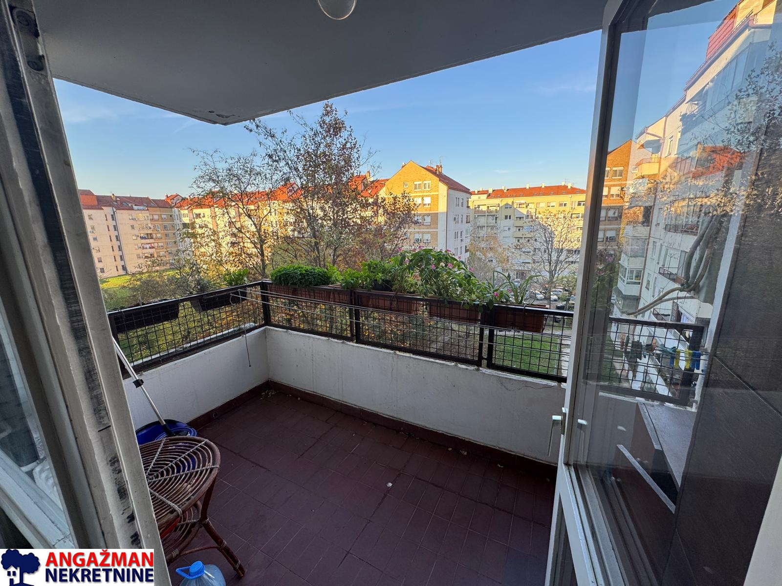 Lep trosoban stan u centru Novog Beograda. Stan je dvostran, sunčan u novijim zgradama. Zaklonjen od buke, ispred i oko zgrade veliki parking. Blok sa puno zelenila.