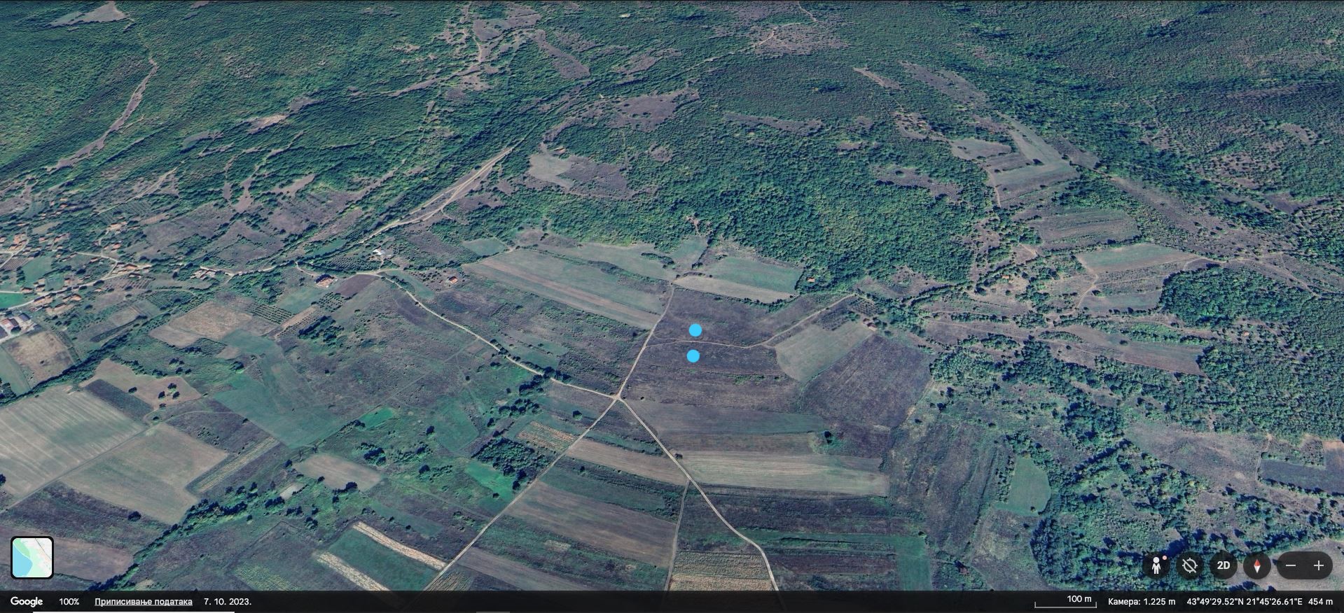 Na geosnimku plavom tačkicom je obeležena parcela.