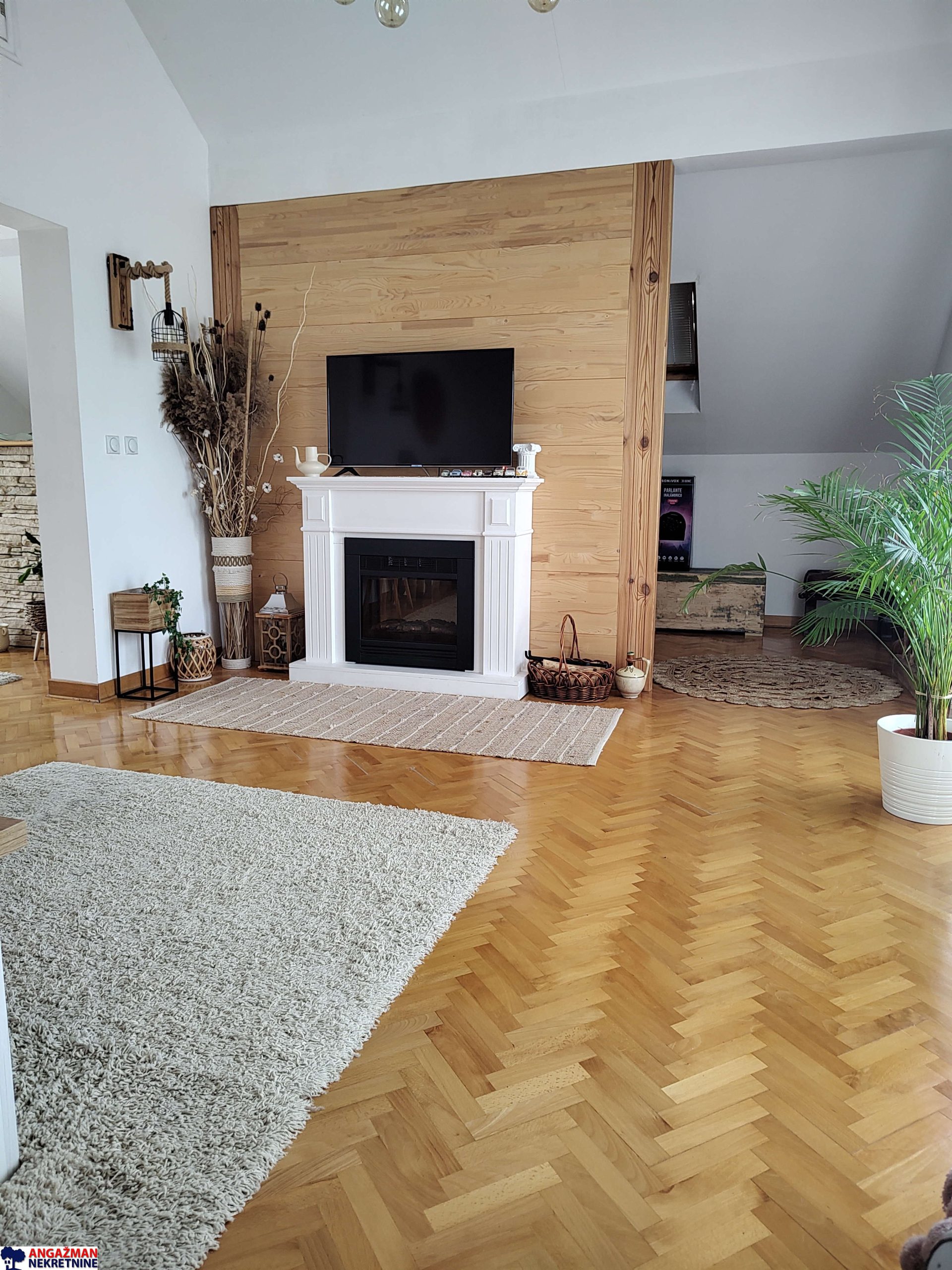 Sastoji se iz dve zasebne jedinice. Na donjem nivou je stan od 57kvm, a na gornjem duplex od 112kvm.