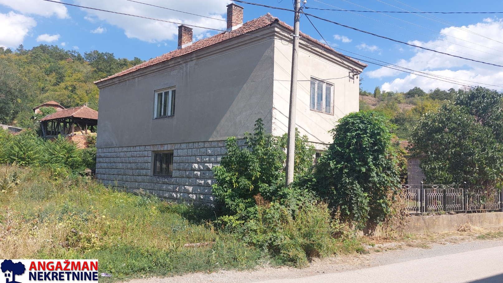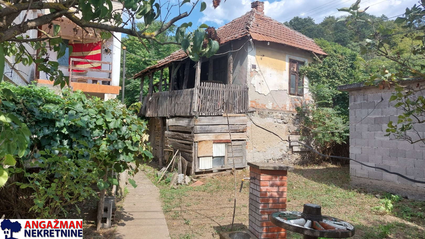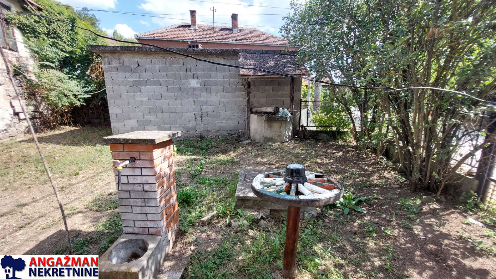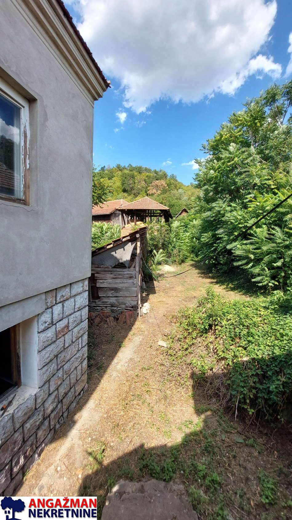 Preko puta nje je pomoćna stara zgrada 32m2 uknjižena, koja se koristila za stanovanje, ispred nje je ozidana neuknjižena garaža. Parcela je građevinska i dimenzija: (17,84x25x14,61×17,55). Struja trofazna, voda gradska, septička jama.