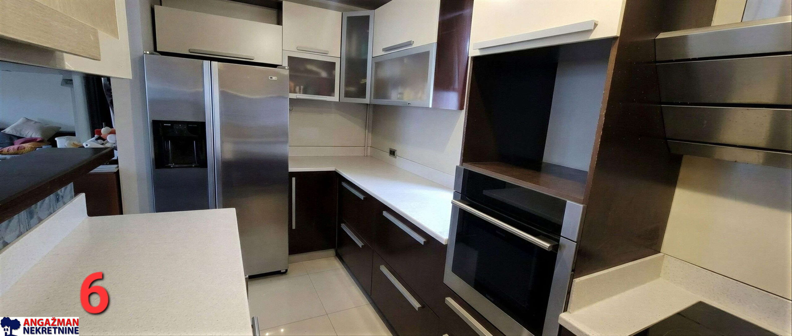 Grejanje je centralno, stolarija drvo i aluminjum, centralna klima, video nadzor u stanu, Bosal unutrasnja vrata, hrastov parket. Dvostran i svetao.